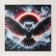 Majestätische Eule, die ihre Flügel unter einer leuchtenden himmlischen Sonnenfinsternis ausbreitet.