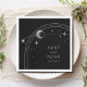 Der mystische Himmelskörper Black Silver Sun Star Moon Astronomie Space Wedding Napkins zeigt Sonne, Mond und Sterne mit einem goldenen Rahmen auf schwarzem Hintergrund. Personalisieren Sie mit Ihren Namen und Datum oder benutzerdefinierten Text in der Mitte. Entworfen für Sie durch © Evco Studio. Teil einer Sammlung unter www.zazzle.com/store/evcostudio