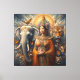 Das Kunstwerk zeigt eine mächtige und mystische Szene, die Elemente von Spiritualität, Mythologie und Natur miteinander verbindet. Die zentrale Figur strahlt ein Gefühl der Gelassenheit und Kraft aus, während die umliegenden Tiere die Aura des Powers und der Mystik verstärken. Zentrale Figur Die zentrale Figur scheint eine Göttin oder Göttin zu sein, mit aufwändigem goldenen Schmuck und einem ruhigen Ausdruck geschmückt. Ihr halb schattiges Gesicht könnte Dualität oder eine Verbindung zwischen verschiedenen Realms symbolisieren. Ihre sanfte Interaktion mit dem Tigerjungen legt Mitgefühl und Harmonie mit der Natur nahe. Symbolische Elemente Elefant: In vielen Kulturen symbolisiert sie oft Weisheit, Stärke und Glück. Tiger: Stellt Power, Mut und Schutz dar. Goldener Juwelier: Bedeutet Göttlichkeit, Reichtum und Status. Dunkler Hintergrund: Erschafft ein Gefühl von Geheimnis und betont die zentrale Figur und Tiere.