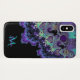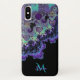 Mystischer Mandelbrot keltischer Fraktal iPhone X Fall. Lavendel, Aqua, lila aquamarines und rosa Mandelbrot Fraktal im schwarzen, lila und blauen Grün mit keltischen Herzen und mystischen Symbolen. Modern und elegant. Füllen Sie Ihren Namen und Initiale an der Aufforderung aus und fertigen Sie jede mögliche Weise besonders an, die Sie mögen. Ihr Lieblingstelefon wird in einer einzigartigen, künstlerischen boho Art geschützt.