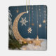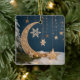 Die Zauber der Saison mit einem himmlischen Monddesign. Dieses mystische Ornament mit hängenden Sternen und Schneeflocken strahlt goldene Lichter und tiefe Marinetöne aus.