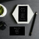 Carte de visite, taille : Carré : 6,4 cm x 6,4 cm, papier : Signature UV mate, coins : Carré