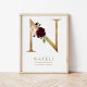 N Letter Monogram Name Marsala Floral Kinderzimmer Poster