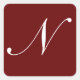 N Monogram White on Dark Red Quadratischer Aufkleber