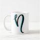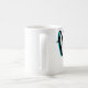 Kalligraphie des Buchstaben N auf einer grundlegenden Tasse mit blauen Akzenten