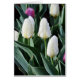 Ein vorübergehender Sturm lagert Feuchtigkeit auf drei weiße Tulpen ab. Beachten Sie, dass diese Karte mit Ihrer persönlichen Inschrift angepasst werden kann.