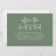 Markieren Sie den Anfang Ihrer Ewigkeit mit Eleganz mit unserer zeitgenössischen schönen sauberen und wunderschönen rustikalen grün von grün thematisierten Hochzeitsfeier Einladungskarte, "Happily Ever After Brunch". Diese Einladung eignet sich perfekt für Paare, die ihren fröhlichen Anlass ausdehnen und mit einem Hauch von Verspieltheit die Bühne für eine unvergessliche Veranstaltung geben. Das zeitlose Design des Drehbuchs verleiht Ihren Festlichkeiten eine Touch raffinierten Charmes. Diese von TeeshaDerrick entworfene Einladung verspricht, Ihre Liebe schön zu erfassen.