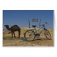 Kamel und Fahrrad vor Khettaras oder Tunnelanschlüsse in der Nähe von Erfoud, Marokko
