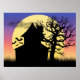 Dieses alte und unruhige Spuk Haus steht hoch mit dem fast kahlen Baum daneben. Fledermäuse fliegen nah zum Haus, während der Mond dahinter aufsteigt. Ist das eine Wolke, die vorbeizieht, um ihr einen gruseligen Blick zu geben, oder kommt dieser Rauch aus dem Schornstein? Überwuchertes Gras und Unkraut reihen den Boden des Hauses und des Baumes ab. Die leuchtend blauen, rosa und orangefarbenen Hintergrundfarben verleihen diesem Ort einen Hauch von der Nachmittags- oder Morgensonne. Wählen Sie aus einer Vielzahl von Plakaten und Drucken.