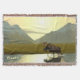 Irgendwo im Inneren von Alaska schleicht ein Elch an einem sonnigen Herbstnachmittag durch einen Teich. Mit dem Ende des Jahres nähert sich das Licht dem typischen gelblichen Ton, der alles ein wenig brüchig erscheinen lässt. Die Sonne fällt zwischen den Bergen im Hintergrund ab. Es erscheint auch der Text "Alaska" mit individualisierbarem Text.