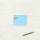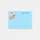 Post-it-Notes in hellblau mit einem niedlichen Schulbüchergraphieprint gezeigt. Passen Sie dieses Objekt an und ändern Sie den Namen zu Ihrem, fügen Sie es wie einen Namen oder anderen Text oder kaufen Sie, wie es ist.