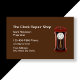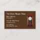Business Cards Template für den Uhrenladen und die Uhrenwerkstatt mit Bild einer Pendeluhr im Hintergrund und einfachem Layout, das speziell für den Online-Einsatz entwickelt wurde.