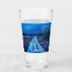 Panoramasicht auf das Bug in der Nacht mit Holzweg, kleinen Teichen und Kiefern. Wanderweg mit hölzernem Weg, der über den Sumpf führt, gegen Vollmond und Nachthimmel mit Sternen