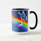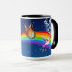 Nachthimmel, zwei Vögel, Schmetterlinge und ein Re Tasse