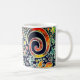 Nachtlicht Reflektion Original Abstrakte Kunstwerk Kaffee Tasse. Ein faszinierendes Spiel leuchtender, farbenfroher Naturformen auf einer geheimnisvollen schwarzen Oberfläche. Der surreale Ausblick ist handgemalt in Acryl, mit Mandarine, Gold, Cerulean, und einem Hauch von Orchideen, hervorgehoben mit perlenweißer Farbe, auf einem Teppich aus Kohle. Es ist ein Rätsel für einen leidenschaftlichen Betrachter, ein Kunstliebhaber, der eine endlose Geschichte hinter dem Design schätzen wird. Dieses Originalgemälde wurde von der Künstlerin Aleksandra Grbic Hrustic gemacht. Copyright, alle Rechte vorbehalten. Diese farbenfrohe Tasse ist der ideale Begleiter für den Morgenkaffee.