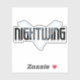 Dieses grafische Design erfasst geschickt die Essenz des Nachtschwungs, eines der geschicktesten Protégés von Batman, durch eine moderne und minimalistische Ästhetik. Das Logo zeichnet sich durch das ikonische Nachtsymbol in einem glänzenden, metallischen Blau aus, das sich deutlich gegen den schwarzen Hintergrund stellt und einen visuellen Eindruck hinterlässt. Das Wort "NIGHTWING" wird oberhalb und unterhalb des Emblems wiederholt, mit einem stilisierten Schriftart, der das futuristische Ambiente des Designs steigert. Diese Grafik ist nicht nur eine Anspielung auf Nightwing's Agility und Verstohlenheit, sondern auch seine Evolution vom lebendigen, akrobatischen Robin zu einem eindrucksvollen Held an sich. Die klaren Linien und scharfen Winkel spiegeln die Präzision des Nachtflügels und die High-Tech-Natur seiner Ausrüstung und Taktik wider, was es zu einem perfekten Emblem für die Fans des Charakters und des größeren DC Universums macht.