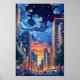 Atemberaubendes Plakat, das nachts die lebhaften Lichter einer Stadt zeigt und die Energie und Schönheit des urbanen Lebens nach Einbruch der Dunkelheit einfängt. Die glühende Skyline und die leuchtenden Lichter sorgen für eine bezaubernde und dynamische Atmosphäre und machen sie zu einem perfekten Begleiter für moderne Zuhause oder Büros. Erhältlich in mehreren Größen und mit Anpassungsoptionen.