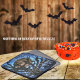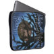 Dieser digitalisierte, grafische zeichn zeigt einen geistreichen, gnarmigen Baum mit kratenförmigen Gliedmaßen, ausgestreckt hin, einem schattigen, bronzefarbenen Mond mit Raven-Vögeln, in den Zweigen gekrönt, mit Gotik, Gruß, gegen einen blauen und nachtblauen Himmel.