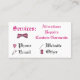 Diese crafty Visitenkarten sind eine große Weise, das Wort über Ihr nähen-bedingtes Geschäft zu verbreiten! Vergessen Sie nicht, die Orange zu schlagen "besonders anfertigen sie!" knöpfen Sie und füllen Sie Ihre eigenen Informationen aus! Ändern Sie die Größe, die Orientierung u. die Platzierung jeder Handwerk-themenorientierten Ikone. Duplikat oder löschen sie auch! ©2012 Jessica McConnell alle Rechte vorbehalten.