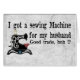 " Ich got eine Nähmaschine für meinen Ehemann - guter Handel, huh?" Ein Volkskunstbild einer Vintagen Nähmaschine mit einem albernen Witz für Abwasserkanäle! Das perfekte Needleworkergeschenk!
