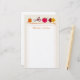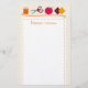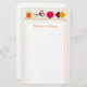 Briefpapier, das oben Illustrationen einer Spule des orange Fadens, der Scheren, des Buttonkissens und der Gewebemuster kennzeichnet. Personifizieren Sie mit Ihrem Namen an der Spitze des weißen Abschnitts mit Stichgrenze.