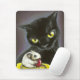 Herrliche schwarze Katze und kleine Maus, die auf einer Moosbeere abnagt. Von der Pastellmalerei des ursprünglichen Öls von Tanya-Bindung