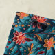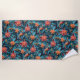 Ein schönes Strandtuch mit einem nahtlosen Blatt Blumenmuster vor blauem Hintergrund.