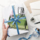 Nahtlose Muster Parfflasche und Aquarelltext Geschenkpapier