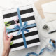 Nahtlose rosa Blume mit Schwarz-weißem Streifen Geschenkpapier