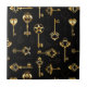 Nahtloses Muster von alten, goldenen und Silhouette Tasten auf schwarzem Hintergrund.