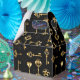 Nahtloses Muster von alten, goldenen und Silhouette Tasten auf schwarzem Hintergrund.