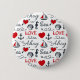 Seamloses Wassermuster mit Wasserzeichen (Segelboot, Anker, Wellen, Seepferd, Muschel) und roten Herzen mit Textdesign auf weißem Hintergrund