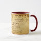 Mug hébreu du verset : "L'Éternel est bon; un bastion en cas de difficulté ; il connaît ceux qui se réfugient en lui." - Nahum 1:7 avec traduction et translittération en anglais