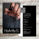 Dieses einfache Design hat Platz für ein Foto Ihrer Nagelkunst auf der Vorderseite mit Ihrem Namen. Sie können Ihre Kontaktdaten und einen QR-Code auf der Rückseite hinzufügen.
