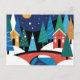 Eine bezaubernde naive Kunstschneeszene entfaltet sich unter einem mondbeleuchteten Himmel. Schneedecke die Dächer von gemütlichen Häusern und klammert sanft an die Äste von hohen Bäumen. Über einen sanft fließenden Fluss ragt eine Steinbrücke, deren Oberfläche das silberne Glühen des Vollmonds reflektiert. Die friedliche Nacht wird mit einem warmen, skurrilen Charme beleuchtet.