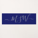 Namaste Initials Personalisiert Navy Royal Blue 2-seitige reversible Yoga Mat. Namaste Nachricht in grauer Schrift Handschrift mit Scrollwork vor der marineblauen königsblauen Yoga-Matte. Die leicht anpassbaren Monogramm-Initialen Ihres Empfängers oder des Empfängers des Geschenks oder der Name in grauem Skripthandling mit Scrollwork auf der Rückseite der königsblauen Yoga-Matte. Einfache minimalistische 2-seitige, reversible, individuell angepasste Royal Marinematze, perfekt für die Lebensmitte oder Yogis jeden Alters. Step by Step Inspiration Series exklusiv auf Zazzle unter zazzle.com/store/KrisHarty erhältlich, entwickelt von Kris Harty, einem internationalen Designer. © 2020 Kris Harty Step by Step Inspiration