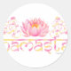 Yoga Stil Baby lila Design. NAMASTE in Sanskrit aussehender Schriftart mit Blumendesign und Lotus-Blume. Von www.YogaGlam.com