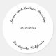 Anpassen Name, Datum schwarz gekrümmte Buchstaben Hochzeit Klassischer Rundsticker Sondertext, personalisieren Sie ihn mit Ihrem eigenen Text, Informationen