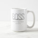 Eine große BOSS-Tasse mit Ihrem Namen, dem Namen Ihrer Firma und ihrem Gründungsdatum. Das Design ist in Grau und Schwarz gehalten. Fügen Sie einfach Ihre Informationen hinzu, fügen Sie diese Tasse Ihrem Warenkorb hinzu und trinken Sie Ihren Kaffee wie den Chef, den Sie sind. Name Black Gray Boss Coffee Tasse Holidayday Design | ©Melissa Patton - Designer