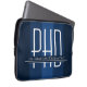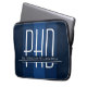 Ein PhD-Abschluss-Geschenk Laptop-Ärmel mit einem blauen und weißen Farbschema. Einfach den Namen anpassen, den Laptop-Ärmel in den Warenkorb legen und dem Absolventen schenken. Name Blau Abschluss PhD Laptop Hülle Holidayday Design | ©Melissa Patton - Designer