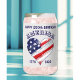 "Happy Birthday America, 1776-2026" and name in dark blue lettering are featured on this trendy 16oz. drinking glass resembling a beverage can. Designed with a bold abstract American flag heart showing a weathered effect. The glass is wrapped in a platinum color background. Easily change name to make it yours using the Template provided. To edit, change fonts style-color-size and more-- use the Design Tool. See "About" for more information. ===>Hand wash only.<===