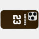Fügen Sie einen Namen und eine(n) Nummer(n) hinzu, um diese benutzerdefinierte braune und weiße Sport Jersey inspirierte Telefonzelle(n) zu personalisieren. Es ist ein ausgezeichnetes Geschenk für einen sportlichen Fan oder Sportler. Es stehen die Optionen zur Farbänderung und zum Ändern der Schriftart-Größe zur Verfügung.
