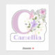 Personalisieren Sie jedes Element mit einem Namen und Initial mit einem Blumen-Design-Ausschneidungs-Sticker. Beispielname ist Camellia.