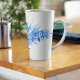 Eine beeindruckende Komposition von tropischen Cobalt Blue-Aquarell-Blume und Blätter, großer Hibiskus und blauer Leidenschaft Blume in der Mitte, schmückt diese 15oz klassische latte Tasse. Große Kapazität für warme oder kalte Getränke. Ändern Sie einfach den Namen, in Text, oder entfernen Sie ihn mit der bereitgestellten Vorlage. Weitere Informationen und Betreuung finden Sie unter "Über dieses Produkt".