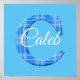 Name der Jungen mit Buchstabe C initial. Blaues kariertes Musterbild. Dekoratives Plakat für das Zimmer des Jungen. Text kann bearbeitet werden, um dieses Poster einzigartig zu machen.