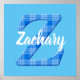 Name der Jungen mit Buchstabe Z anfänglich. Blaues kariertes Musterbild. Dekoratives Plakat für das Zimmer des Jungen. Text kann bearbeitet werden, um dieses Poster einzigartig zu machen.