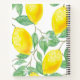 Eine Uni regierte Notizbuch für die Schularbeit, nahm Notizen und schrieb Geschichten. Juckes, köstliches, wasserfarbenes Zitronen in Gelb, Grün und Weiß. Ein Etikett vorne mit Vorlagen für Ihren Namen und den Buchtitel. Grüne Buchstaben. Der Name ist mit einem modernen handgeschriebenen Stilskript geschrieben. Für Studenten, Teenager und Frauen.