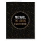 Moderne Rentenkarte mit einem schwarzen goldenen Marmormuster, das durch eine Kreistypografie verziert wird. Personalisieren Sie Ihre Daten mit Namen, Text und Namen der Mitarbeiter im Ruhestand.