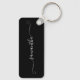 Erstellen Sie Ihren eigenen personalisierten oder monogrammatikalischen rechteckigen Schlüsselanhänger für Ihre Brautmädchen. Ich legte den Namen auf die Rückseite, damit die gürteligen Gürtel nicht durch das Lochloch für den Ring abgeschnitten werden. Passen Sie den modernen, gürtelgeschliffenen, an handgeschriebene Kalligraphie-Skriptfarbe und -größe angehängten Swash je nach Bedarf an. Ändern Sie die schwarze Hintergrundfarbe oder den weißen Text und lassen Sie die Schattenfarben nach Ihren Hochzeitsfarben fallen.