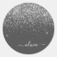 Name der Silver Gray Girly Glitzer Sparkle Monogra Runder Aufkleber
